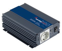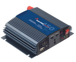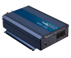 Inversores de onda sinusoidal modificada de alta eficiencia con alta sobretensión de corriente de salida. Los modelos varían de 1250 a 2750 vatios, convirtiendo 12 y 24 VCC a 120 VCA.